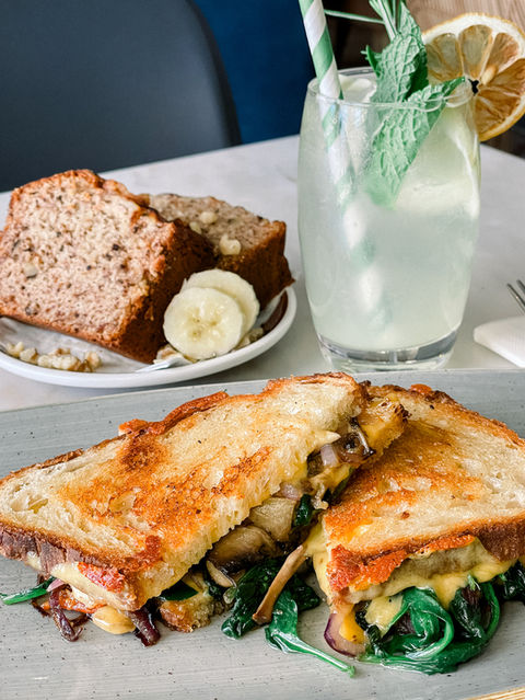 buttered sourdough or bowled with quinoa (GF)(DF). Add spinach 2 | mushrooms 2